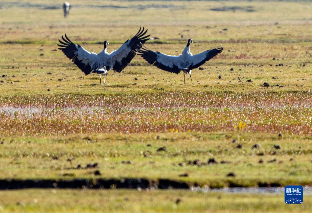 入秋以來(lái),云南省迪慶藏族自治州香格里拉市納帕海國際重要濕地迎來(lái)越冬黑頸鶴。首批黑頸鶴抵達以來(lái),已監測到200余只。