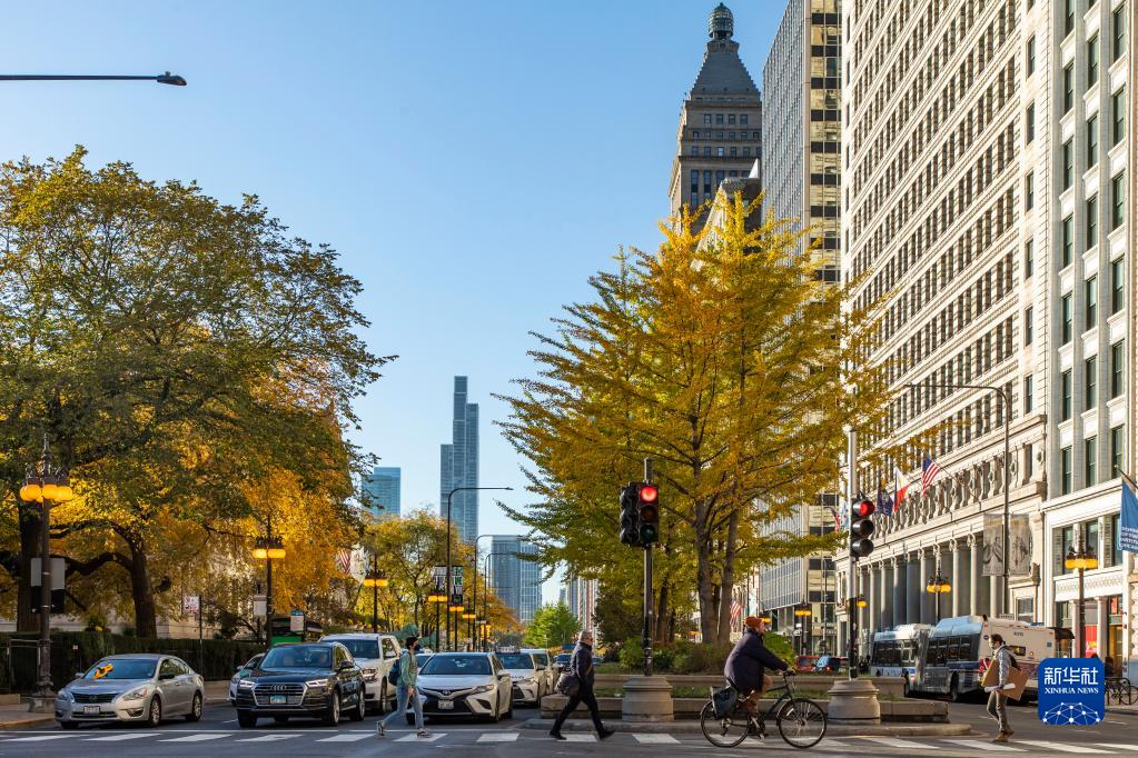 11月2日,行人穿過(guò)美國芝加哥密歇根大街。