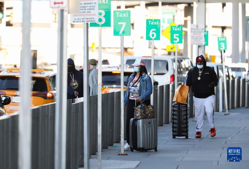 11月8日,旅客在美國紐約肯尼迪國際機場(chǎng)乘坐出租車(chē)。