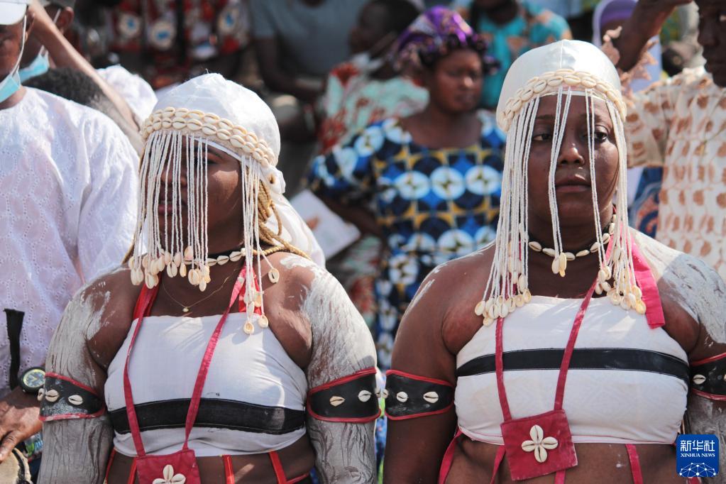 11月10日,婦女身著(zhù)傳統服飾聚集在貝寧科托努機場(chǎng)附近慶祝文物回歸。