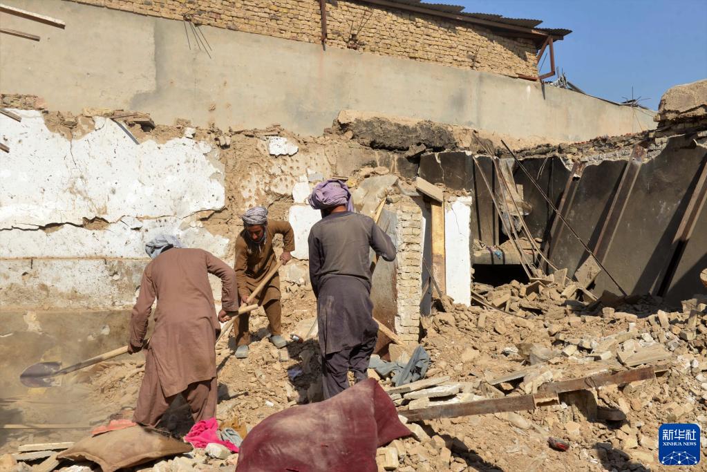 11月15日,在阿富汗坎大哈,人們清理打擊“伊斯蘭國”武裝分子行動(dòng)后的房屋廢墟。