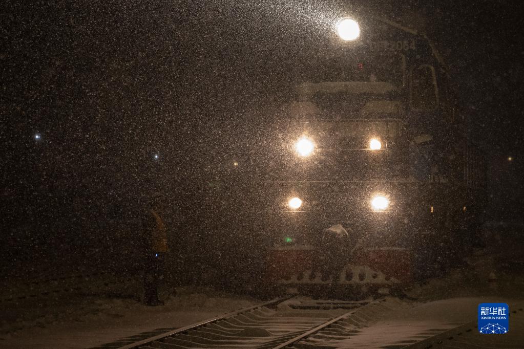 11月22日凌晨,在雞西站西場(chǎng),工作人員進(jìn)行編組作業(yè)。