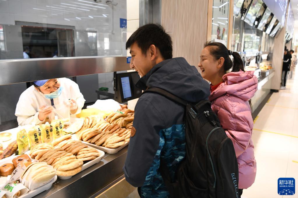 12月2日,在安慶師范大學(xué),唐聞澤和張晨在買(mǎi)早餐。