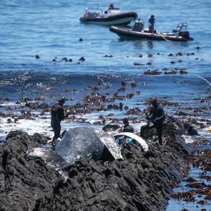 南非開(kāi)普敦:清理海邊鯨魚(yú)尸體