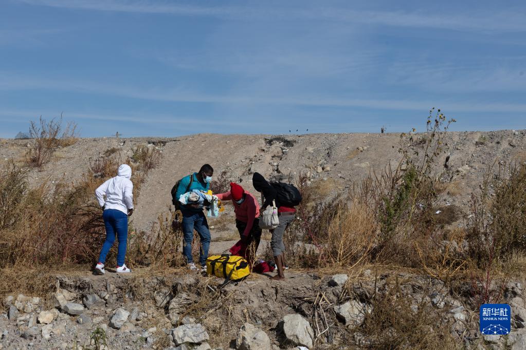 這是12月13日在墨西哥奇瓦瓦州華雷斯拍攝的試圖北上前往美國的移民。