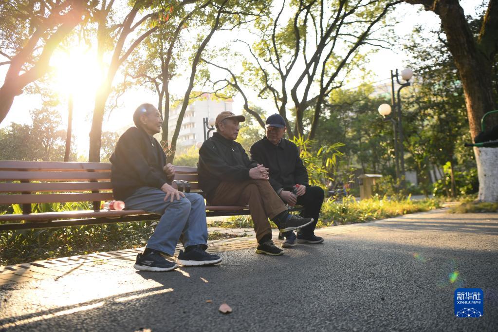 12月22日,余國基、馬利民、魏鎮(左起)在湖南株洲神農公園聊天。新華社記者 薛宇舸 攝