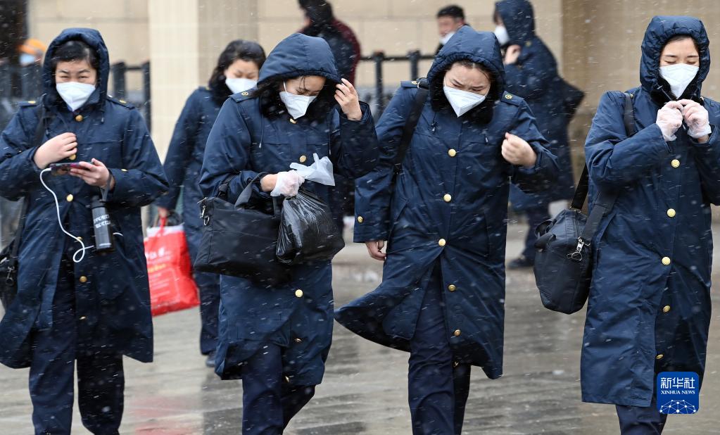 冒著(zhù)風(fēng)雪上班的鐵路員工(12月25日攝)。
