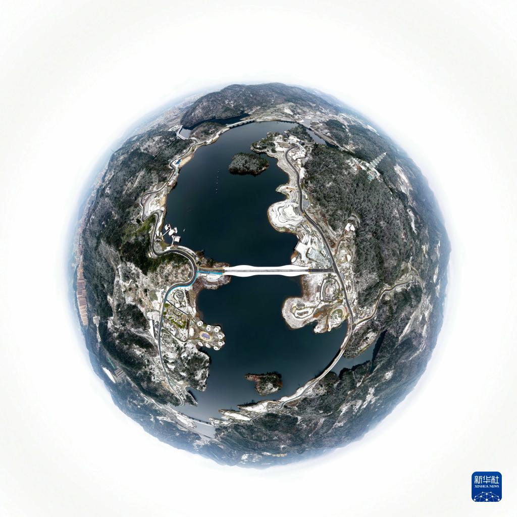 12月28日在貴州省都勻綠博園拍攝的雪景(無(wú)人機全景照片)。