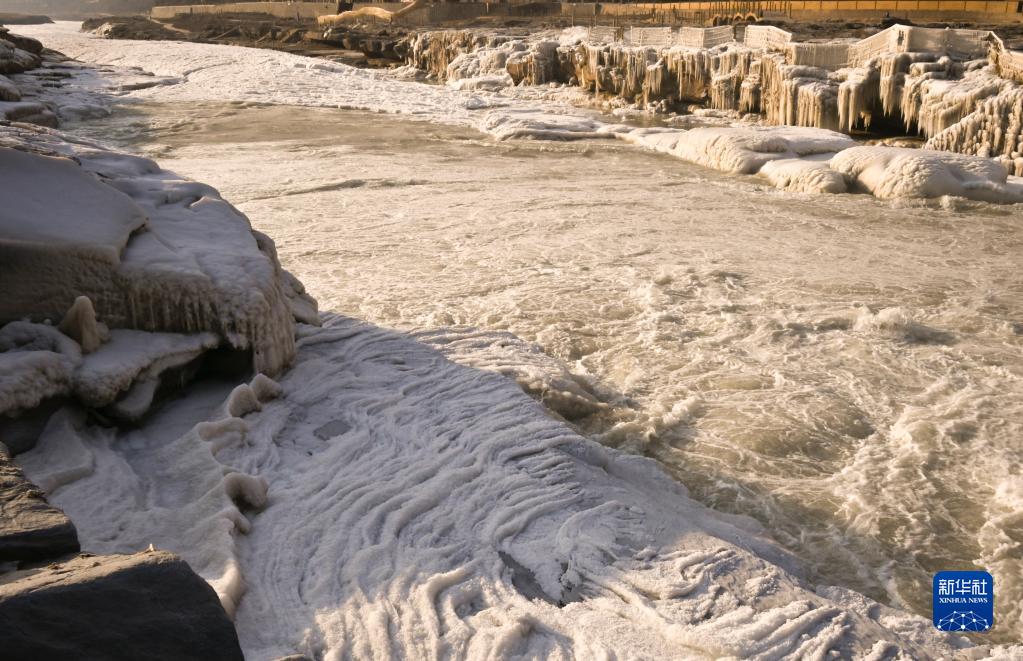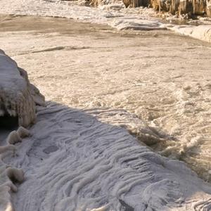近日,隨著(zhù)氣溫逐漸降低,黃河晉陜峽谷流凌密度持續增大,大量流凌堆積,壺口段流凌封河的速度明顯加快,壺口瀑布往日30余米高的落差降低至2米左右。