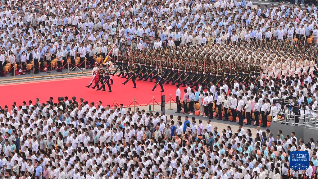 2021年7月1日上午,慶祝中國共產(chǎn)黨成立100周年大會(huì )在北京天安門(mén)廣場(chǎng)隆重舉行。這是國旗護衛隊準備升旗。