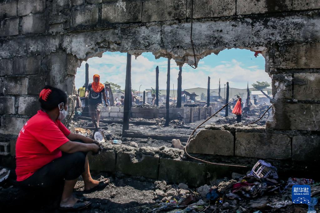 2021年3月26日,人們在菲律賓黎剎省一處居民區的火災災后現場(chǎng)搜尋個(gè)人物品。