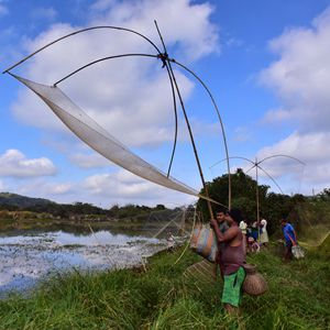 1月13日,在印度阿薩姆邦高哈蒂一處村莊,當地村民參加捕魚(yú)活動(dòng),慶祝收獲季的結束。新華社發(fā)