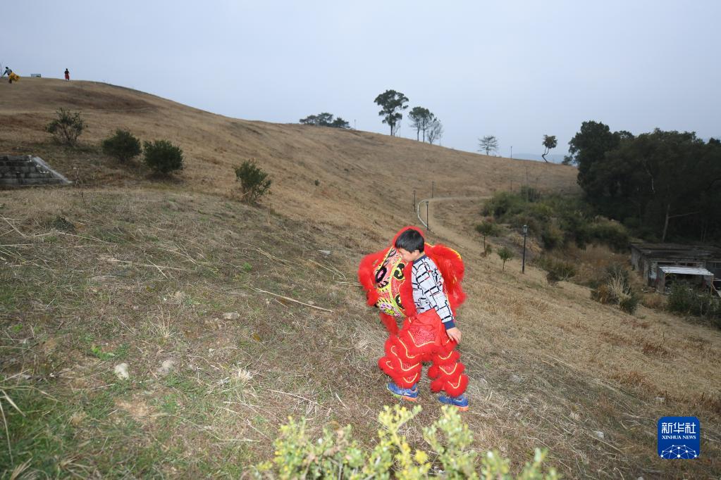1月20日,在前童古鎮邊的小山上,11歲的季宇坤在趕路前去參加訓練。