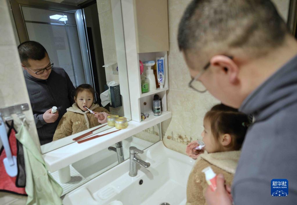 1月28日晚,羅亮在家照顧女兒洗漱。妻子寇莉在車(chē)站值班。