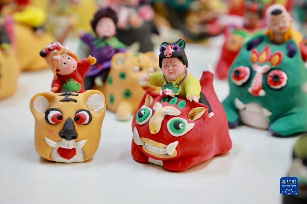 1月17日,在河南省新鄉市,非遺面塑傳承人劉玉偉以"黃河虎娃"為主題,捏制了一組形態(tài)各異的老虎面塑作品,每只老虎身上還坐著(zhù)一個(gè)福娃,象征著(zhù)紅紅火火、吉慶祥和。