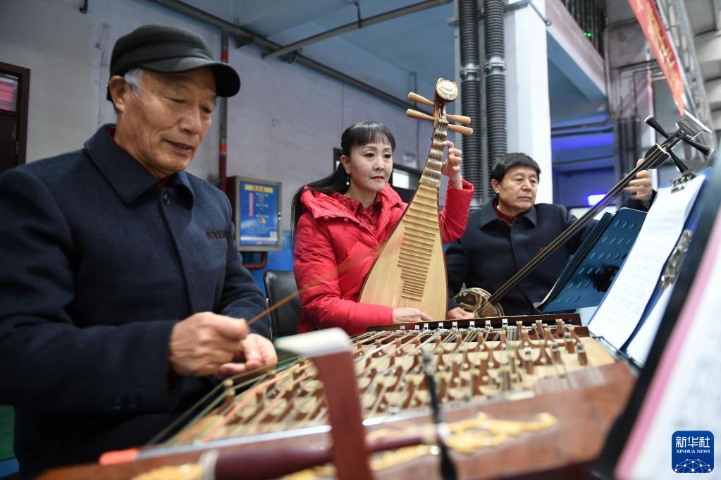 2月13日,在河北電機股份有限公司生產(chǎn)車(chē)間,石家莊市欒城區樓底農民工俱樂(lè )部成員在進(jìn)行演出前準備工作。