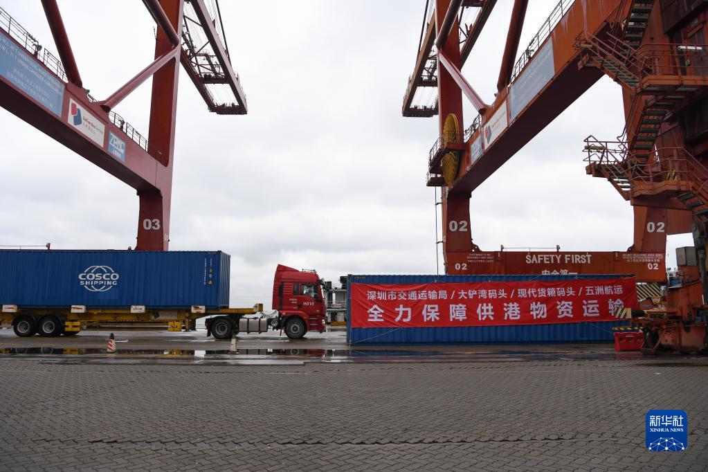 當日,深圳港大鏟灣、媽灣、鹽田集裝箱港區全面開(kāi)通供港物資水路運輸快速通道,優(yōu)化流程、提升效率,全力保障香港同胞生活物資供應。