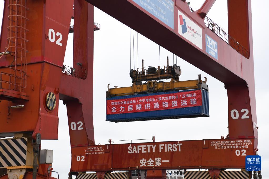 當日,深圳港大鏟灣、媽灣、鹽田集裝箱港區全面開(kāi)通供港物資水路運輸快速通道,優(yōu)化流程、提升效率,全力保障香港同胞生活物資供應。
