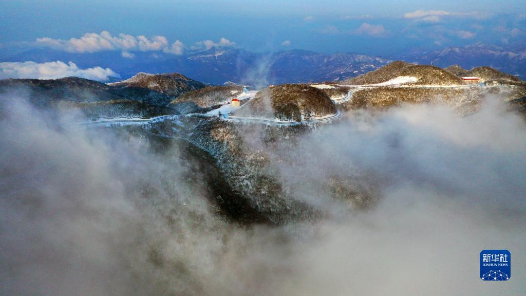 2月21日拍攝的漢中市龍頭山景區雪景(無(wú)人機照片)。