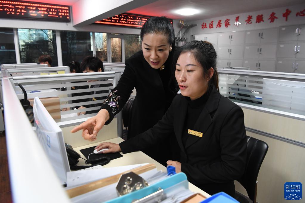 河北省承德市愛(ài)孝居家養老服務(wù)中心工作人員在濱河社區智慧服務(wù)平臺工作(2021年12月16日攝)。