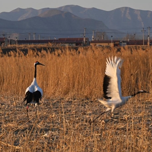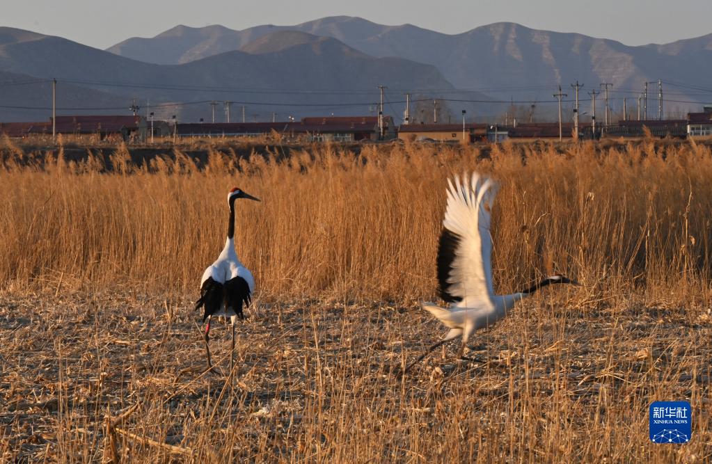 2月23日,兩只國家一級保護動(dòng)物丹頂鶴在山西省大同市廣靈縣壺流河濕地駐足棲息。新華社記者 馬毅敏 攝