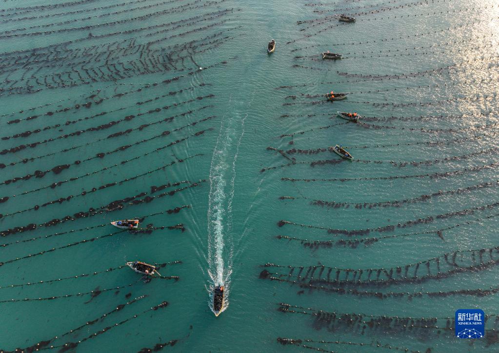 山東榮成的海水養殖面積達56萬(wàn)畝,眼下正值春季海上生產(chǎn)的重要時(shí)期,漁民們駕駛著(zhù)漁船、舢舨在海面上穿梭,進(jìn)行藻類(lèi)管護、更換養殖浮漂等養殖作業(yè),呈現出一派“海上春耕”生產(chǎn)繁忙景象。