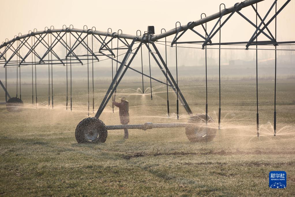 2月24日,在山東省郯城縣李莊鎮,一家庭農場(chǎng)使用智能水肥一體化灌溉設備施肥澆水。