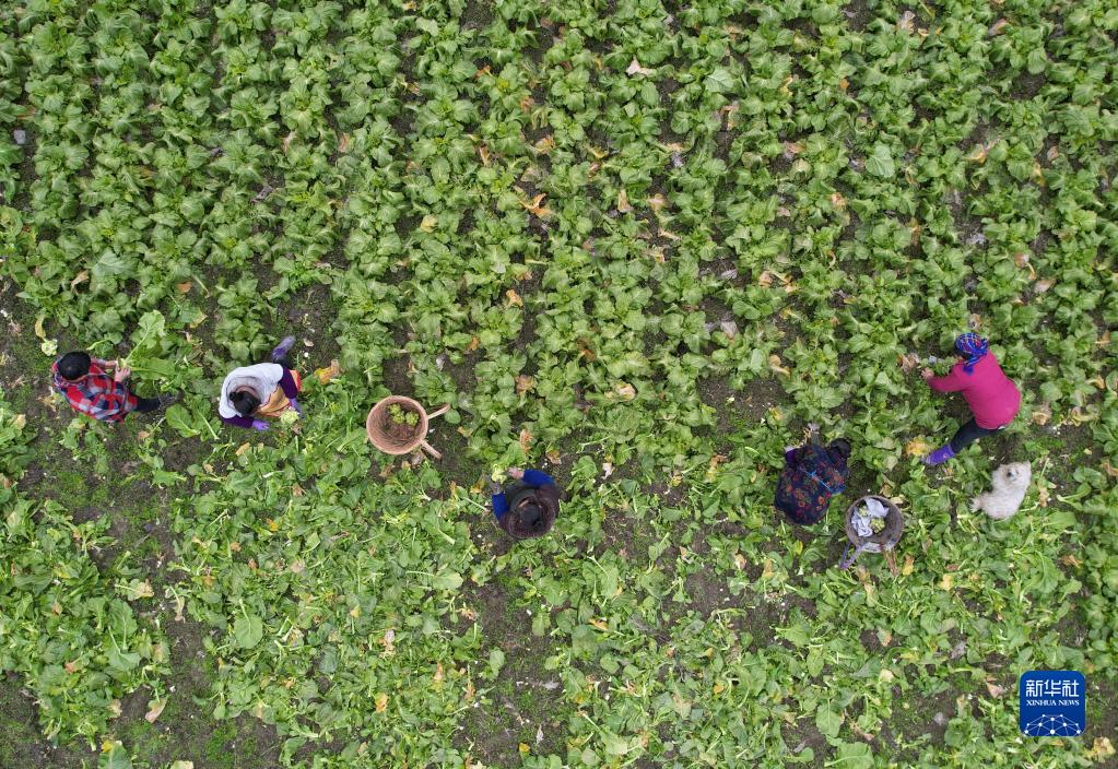 2月24日,在重慶市酉陽(yáng)土家族苗族自治縣涂市鎮涂家寨村,村民采收青菜頭。