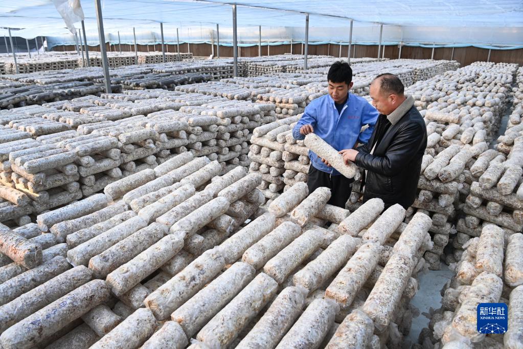 2月24日,留壩縣武關(guān)驛鎮一家農業(yè)科技公司的員工在檢查食用菌包。