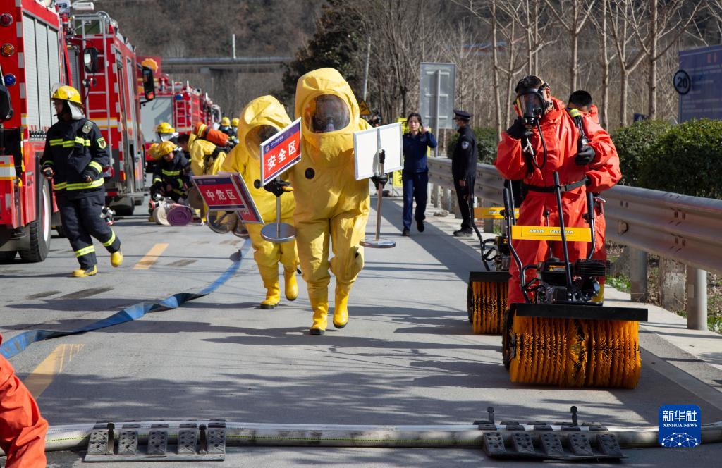 當日,陜西省漢中市在G244國道留壩縣武關(guān)驛鎮境內舉行?;返缆方煌ㄊ鹿蕬本仍菥?。新華社發(fā)(高文亞 攝)