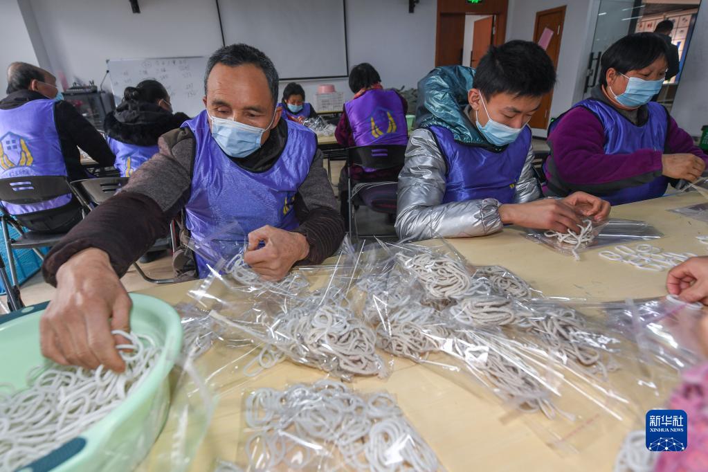 2月22日,在湖州市織里鎮港西村殘疾人之家,來(lái)自周邊的殘疾人(包括精神殘疾、智力殘疾和肢體殘疾)正在打包配件。完成工作后,他們可以獲得相應報酬和補貼。