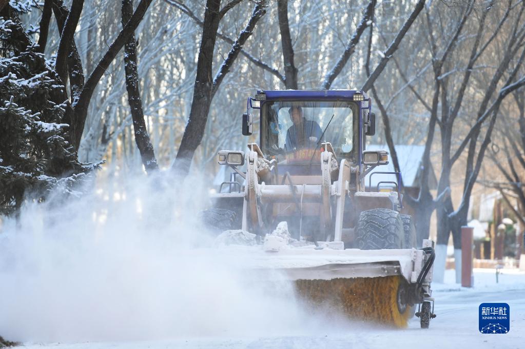 3月1日,除雪車(chē)在沈陽(yáng)奧林匹克公園掃雪。