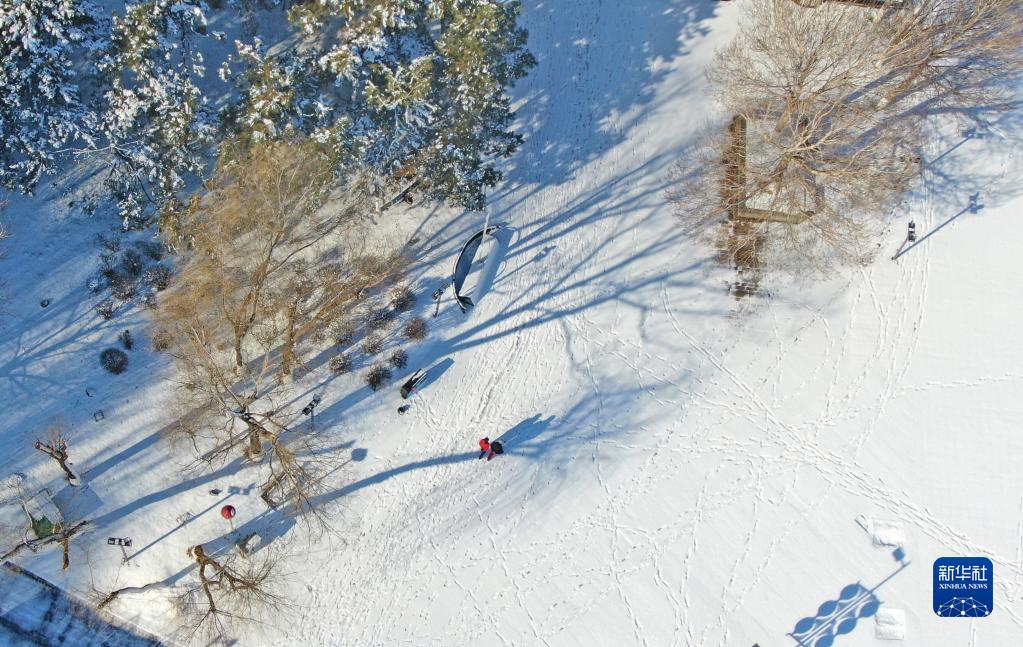 3月1日,市民在沈陽(yáng)市渾河岸邊散步(無(wú)人機照片)。