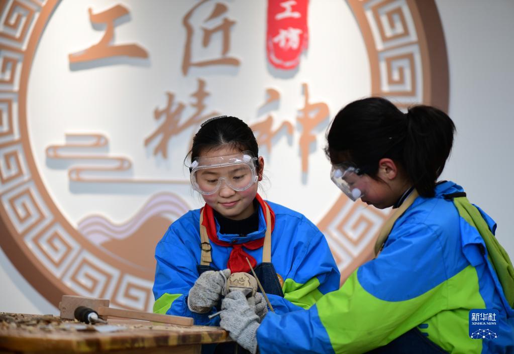 3月2日,在肥西縣嚴店中心學(xué)校少年宮,學(xué)生在木工坊里體驗學(xué)習。