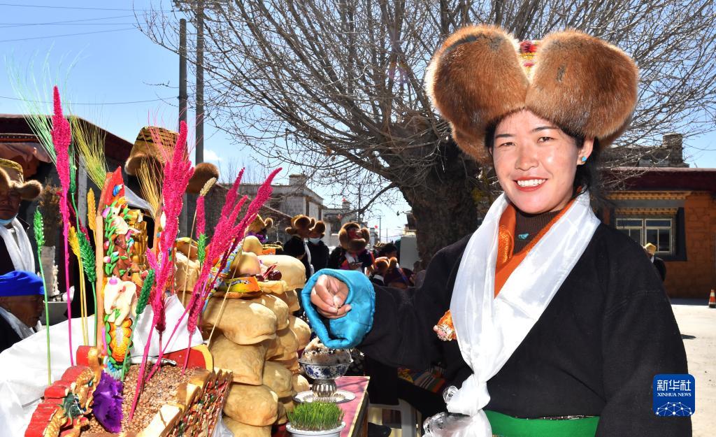 3月3日,西藏山南市貢嘎縣崗堆鎮群眾吃“切瑪”,祈福五谷豐登。