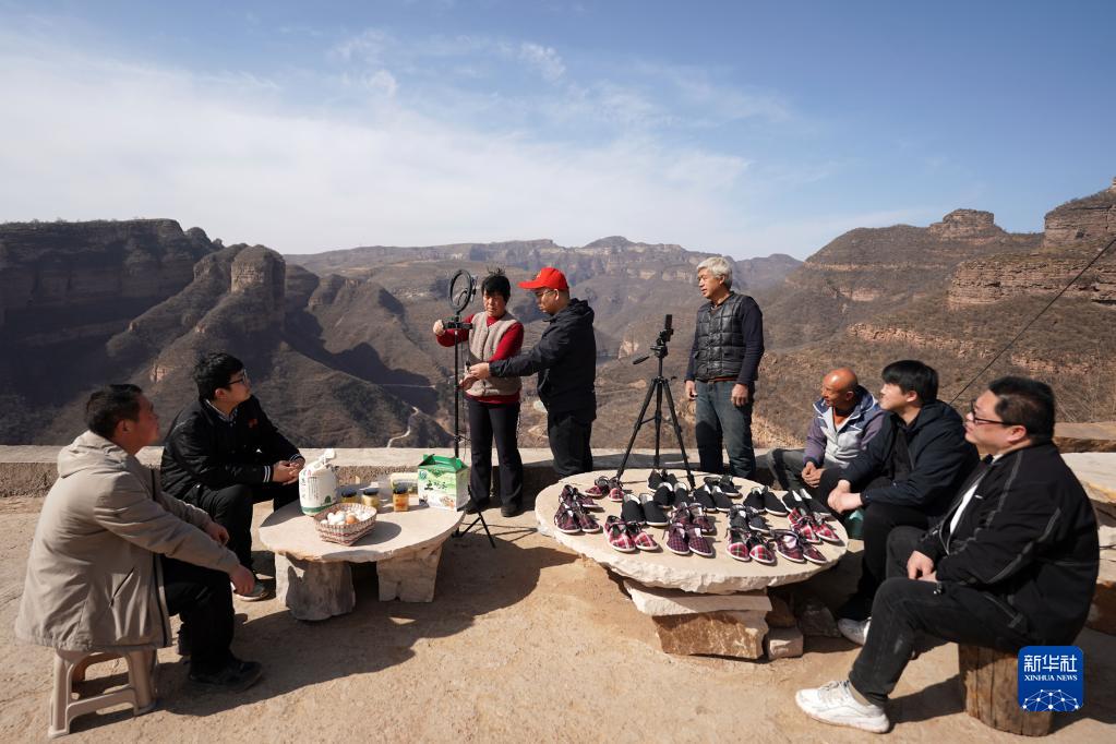 3月3日,在河北省沙河市柴關(guān)鄉大康村,黨員志愿者段計永(左四)培訓村民直播帶貨。