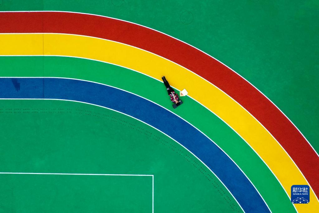 圖為在重慶市特殊教育中心,揚帆管樂(lè )團小號手王太樊在操場(chǎng)上練習小號、背誦樂(lè )譜(2019年10月10日攝)。