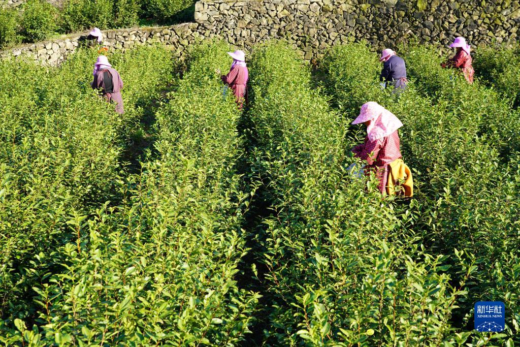3月8日,浙江省樂(lè )清市一茶葉專(zhuān)業(yè)合作社的茶農在采茶。