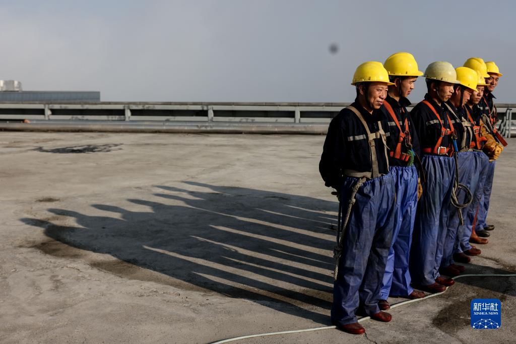 3月15日,“蜘蛛人”在貴陽(yáng)國際貿易中心雙子塔樓頂集結,準備進(jìn)行清洗作業(yè)。