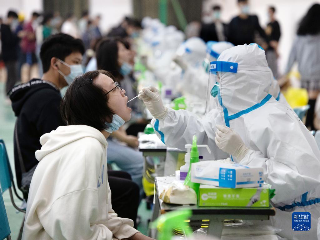 3月14日,香花橋街道社區衛生服務(wù)中心的醫務(wù)人員為某高校的學(xué)生進(jìn)行核酸采樣。