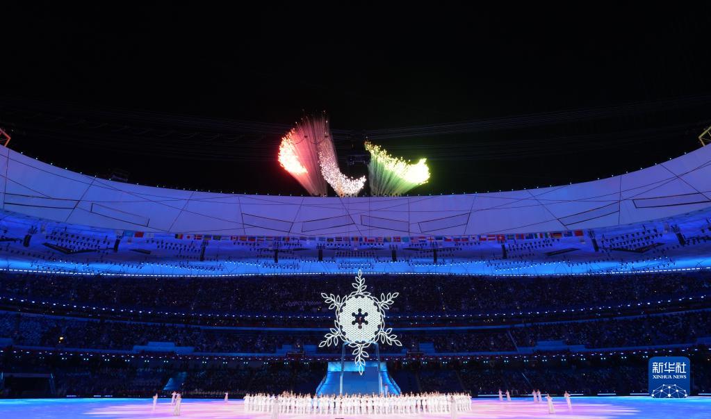 在北京2022年冬殘奧會(huì )開(kāi)幕式上,焰火綻放在北京國家體育場(chǎng)上空(2022年3月4日攝)。