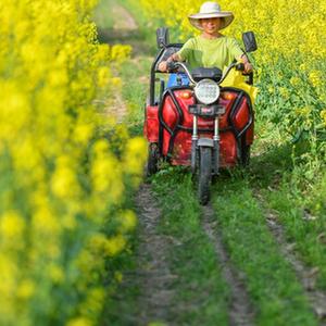 在常德市石門(mén)縣葉家坪村,葉金娥騎著(zhù)三輪車(chē)裝著(zhù)工具準備去勞作(3月15日攝)。