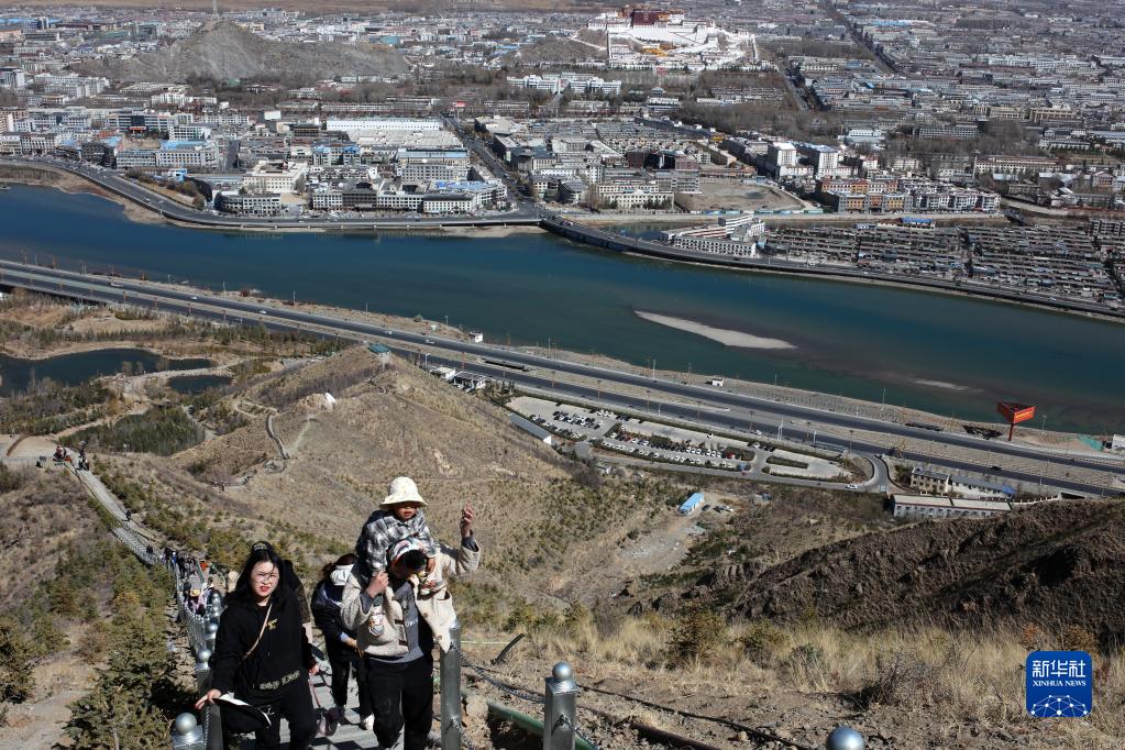 3月19日,游客在西藏拉薩市南山公園爬山。