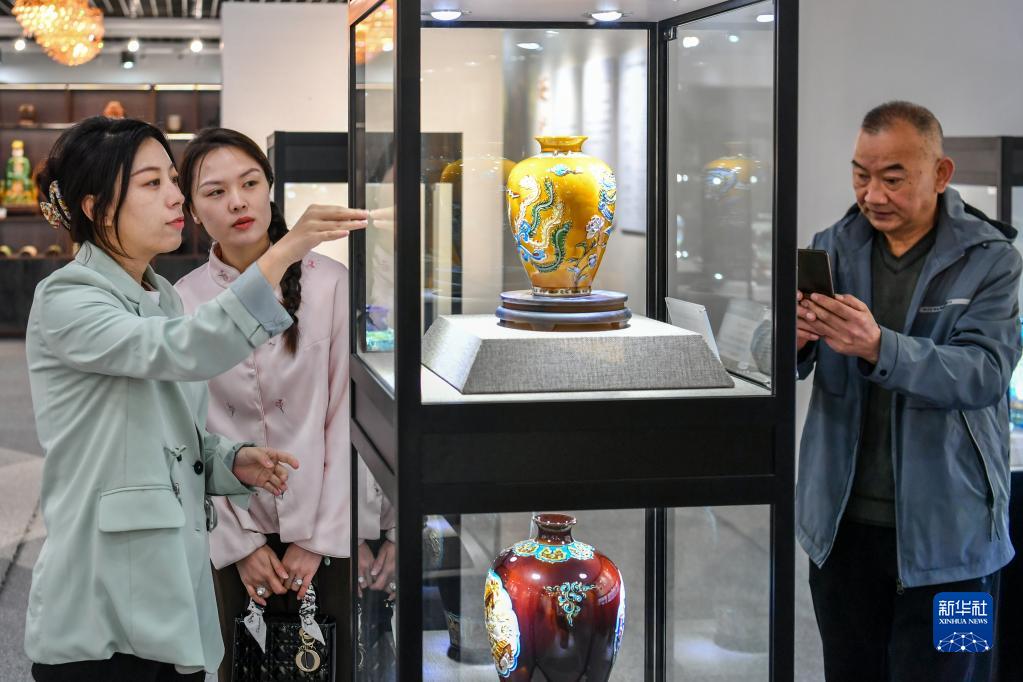 3月24日,在山西省陽(yáng)城縣沙坡村,喬琳(左一)為客戶(hù)介紹琺華。新華社記者 曹陽(yáng) 攝