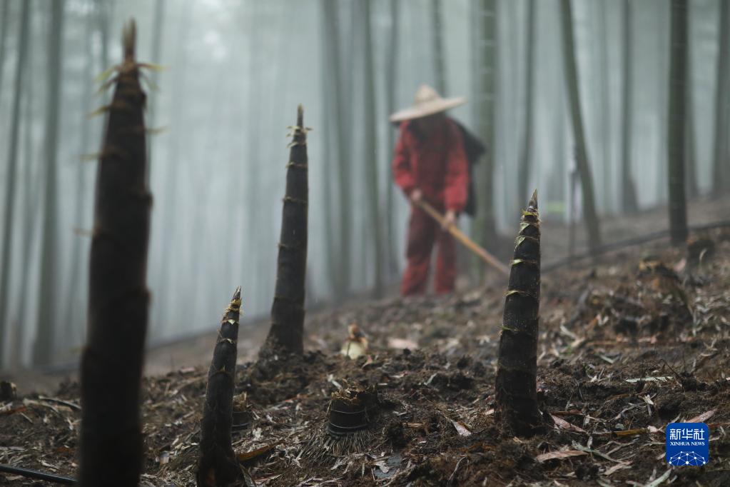 3月26日,貴州省赤水市寶源鄉回龍村村民在采挖竹筍。