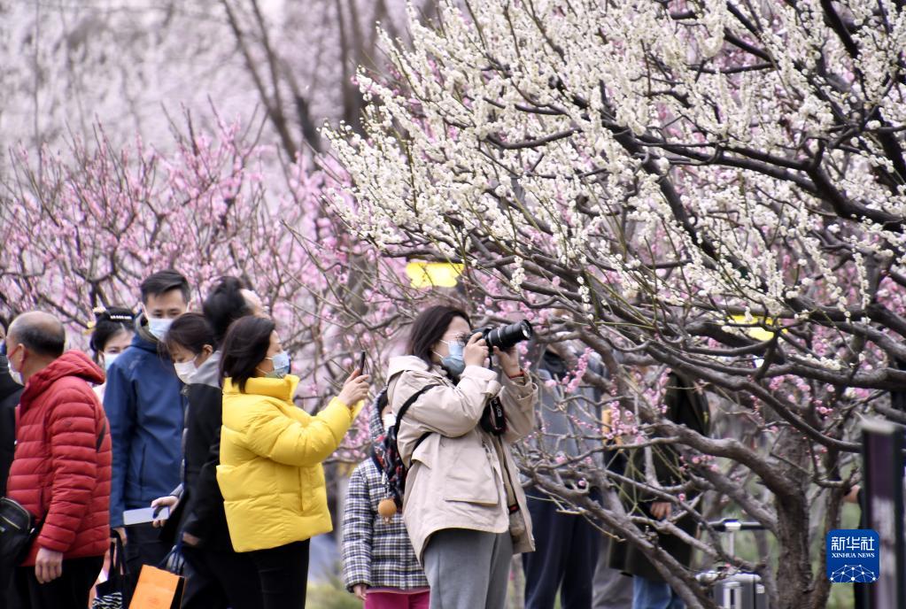 近期,北京市明城墻遺址公園內桃花盛開(kāi),吸引大批市民前來(lái)賞花踏青。
