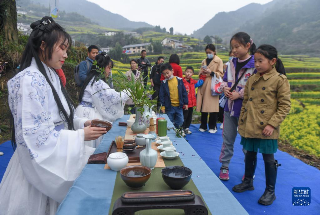 3月27日,胥嶺村“花朝節”上進(jìn)行茶藝表演。