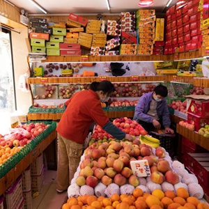 3月30日,在上海市徐匯區,市民在購買(mǎi)水果。