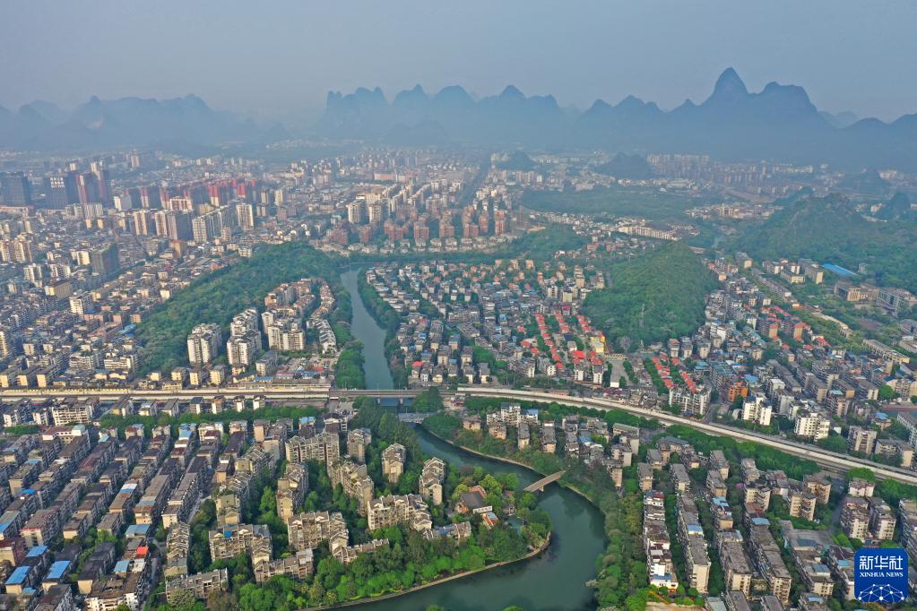 這是廣西桂林市城區景色(4月10日攝,無(wú)人機照片)。