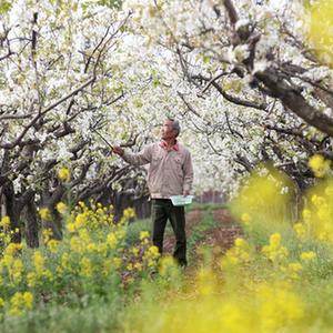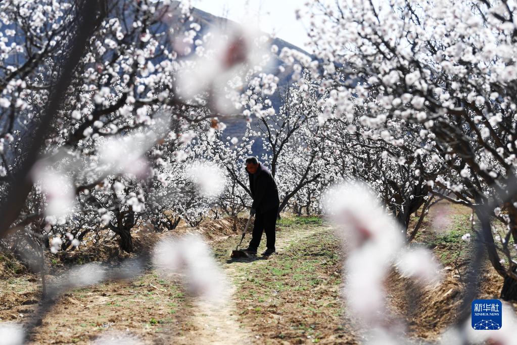 4月12日,農民在河北省張家口市懷來(lái)縣官廳鎮石片村杏花園里進(jìn)行管護。